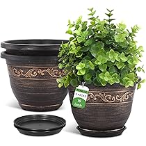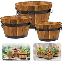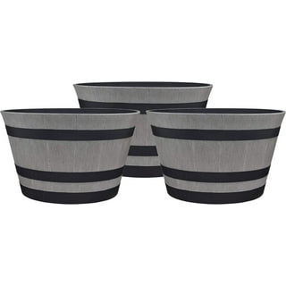 Amazon Com Large Plastic Plant Pots Set Of 3 Pack16 Inch Whiskey Barrel Planters With Drainage Holes Saucer Flower Pots Imitation Wine Barrel Design For Indoor Outdoor Garden Balcony Plants 7 Gallons Brown